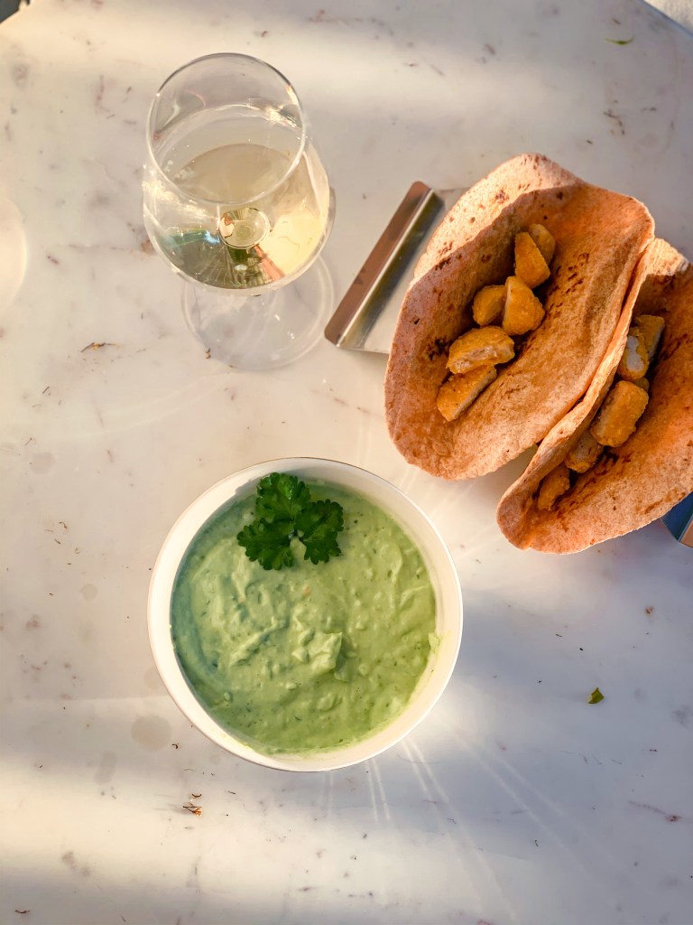 I’m such a huge Chicken-nugget Taco Fan – and its my go-to when I want an easy weeknight dinner. Although granted, I rely on Chicken nuggets or fish sticks in the freezer when I don’t have the time to cook shrimp or freshly grilled chicken 🙂 BUT, the sauce is the main part that ties this together, and I have the BEST recipe for you!