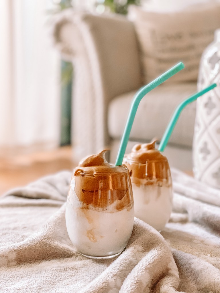 Use a tea spoon to pour in the whipped coffee into the milk